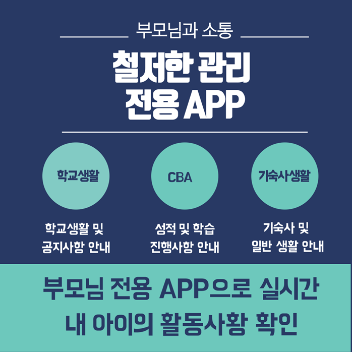 CBA 직원이 24시간 상주하여 학생들의 생활 전반을 관리합니다.