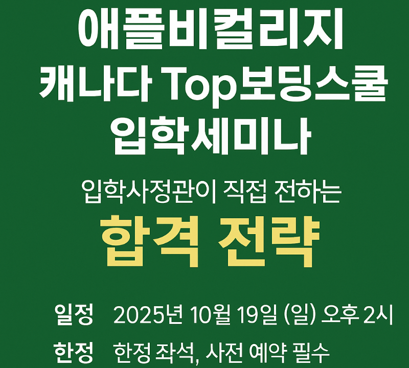 애플비 컬리지 캐나다 Top 보딩스쿨 입학세미나에 지금 신청하세요.